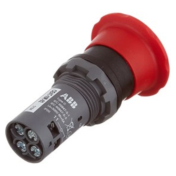 Кнопка управления с фиксацией CE4T-10R-11 без подсветки (красная) 1Н.О+1Н.З. контакты для аварийного отключения (отпускание поворотом) ABB 1SFA619550R1071