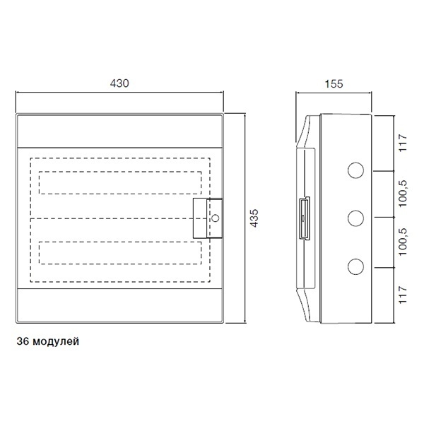 • ёмкость (в модулях 18 мм) - 36 (3х12)