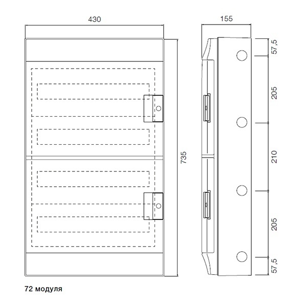 • ёмкость (в модулях 18 мм) - 72 (4х18)