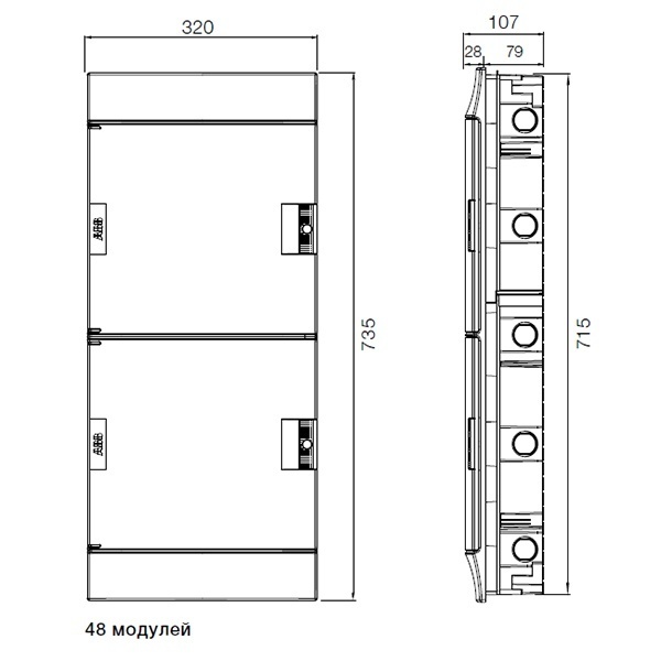 • ёмкость (в модулях 18 мм) - 48 (4х12)