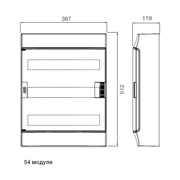 • ёмкость (в модулях 18 мм) - 54 (3х18)
