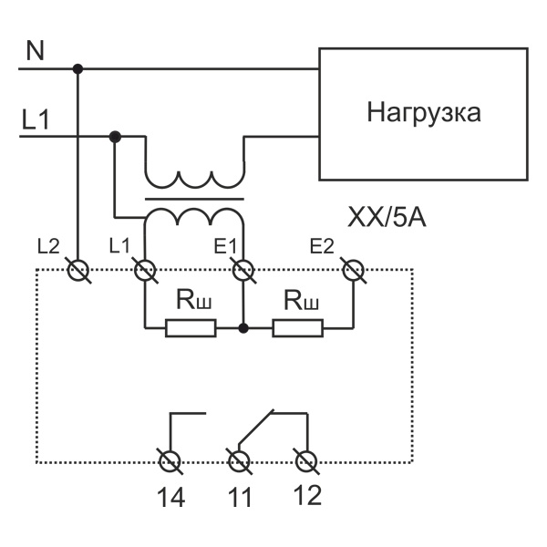 • Измерительная цепь : L1-E2 (1A), L1-E1 (5A)