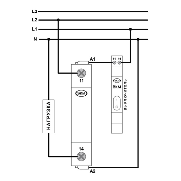 Реле импульсное типов РИО-1КМ1, РИО-1КМ2 предназначены для гальванической развязки между силовыми цепями и цепями управления дистанционного включения нагрузки путем подачи управляющего напряжения на выводы А1 и А2 контактора.