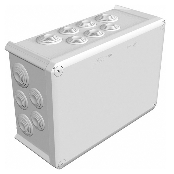 Большая герметичная прямоугольная распаячная коробка размером 285*201мм белого цвета с 24мя вводами, ОБО Беттерман 2007568