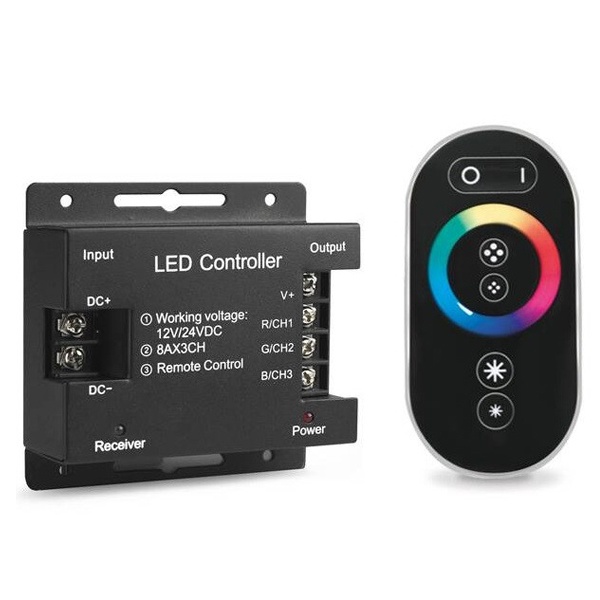 Блок дистанционного управления светодиодной RGB лентой с сенсорным пультом управления Гаусс черного цвета, 12/24 Вольт мощностью 288 Ватт 201113288