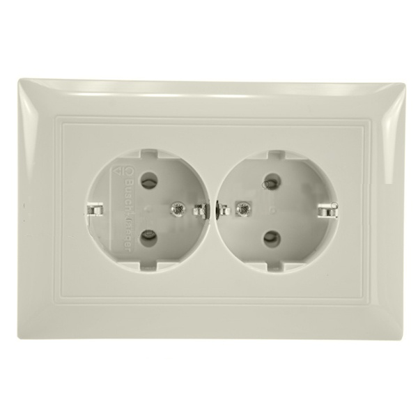 Механизм двойной розетки скрытой установки ABB серии Basic 55 цвета слоновой кости с напряжением 250 Вольт и током 16 Ампер 2CKA002014A1463