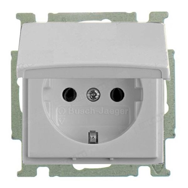 Розетка с крышкой ABB серии Basic 55 цвета белый шале (белый, с легким оттенком серого) 2CKA002018A1500