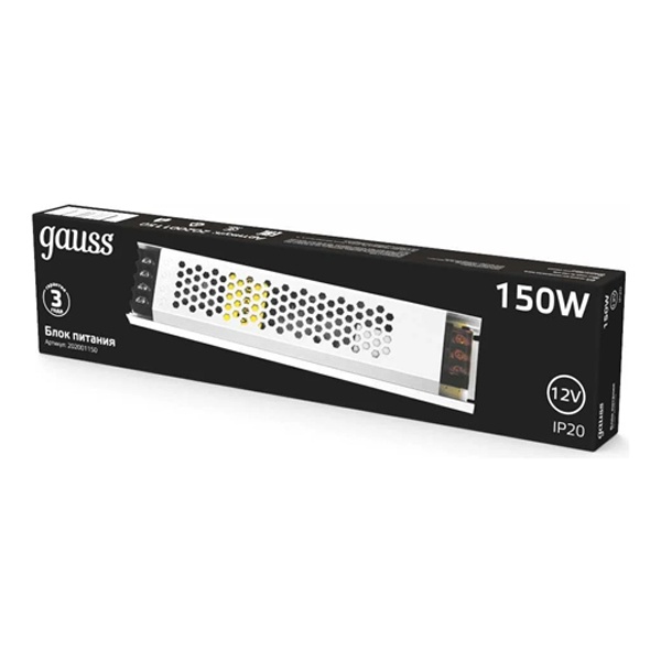 Адаптер питания Гаусс для светодиодных лент 230В/12В мощностью 150 Ватт. 202001150
