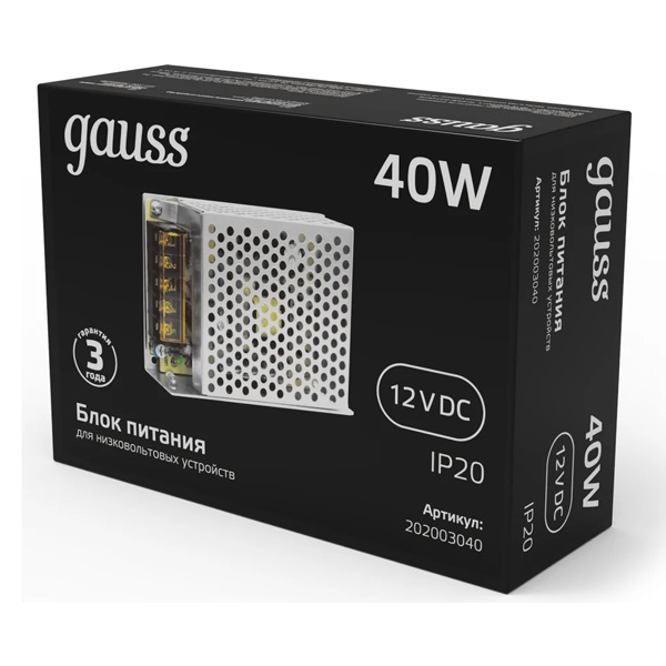 Блок питания для светодиодной ленты Black 40Вт 12В IP20 (драйвер) GAUSS 202003040