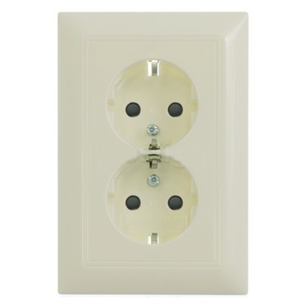 Механизм двойной розетки с защитными шторками скрытой установки ABB серии Basic 55 цвета слоновой кости с напряжением 250 Вольт и током 16 Ампер 2CKA002021A0379