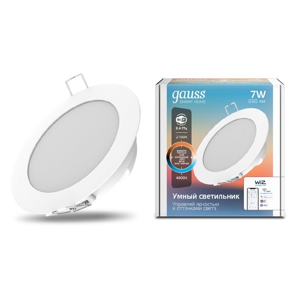 Светильники серии Gauss Smart Home представлены двумя группами продуктов: встраиваемыми и накладными. В целом, настенно-потолочные светильники используются там, где требуется качественный равномерный свет. «Умные» настенно-потолочные светильники Gauss Smart Light управляются по протоколу Wi-Fi через приложение или голосового ассистента. Функционал: расписания и циркадные ритмы. Светильники могут подстраиваться под циркадные ритмы, а если точнее, под ваш режим дня. Благодаря параметру «Ритмы» светильники в течение дня плавно переходят из одного режима освещённости к другому. С момента пробуждения человека свет постепенно становится более ярким, а цвет — всё холоднее и холоднее. К вечеру яркость снижается, а цвет медленно переходит в тёплые оттенки. Собственно, для различных сценариев использования можно создавать расписания. В зависимости от задачи светильники будут автоматически активироваться приложением в выбранный промежуток времени. Также доступно 14 предустановленных режимов теплого и холодного света, которые можно использовать в различных ситуациях. Благодаря приложению WiZ цветовая температура изменится, а вместе с ней и атмосфера пространства. Возьмем в пример праздничный обед для большой семьи или романтический ужин для двоих, правильное освещение создаст ту самую атмосферу, в которой можно насладиться и едой, и компанией. Регулируйте температуры в пределах 2700К-6500К. Разная температура по-разному воздействует на нас. Теплый свет до 3200К дает ощущение тепла и здоровья; средний уровень 3300К-5300К добавит радости и непринужденности; холодный свет свыше 5300К придаст энергии. А самое главное - эти параметры доступны в одном светильнике
