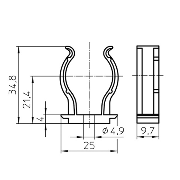 Клипсы применяются по 2 штуки совместно с накидными патронами. Материал - пластик.