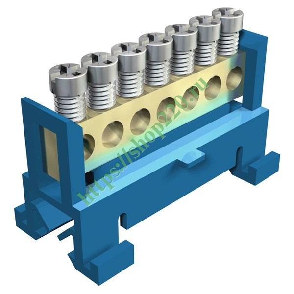 Клеммная винтовая колодка нулевого защитного соединения 7*16 мм2 на дин рейку или плоский профиль, синего цвета 2054000