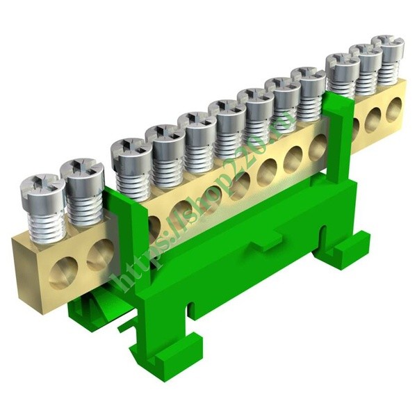 С 12 клеммами до 16 мм2. Латунная никелированная клеммная колодка, винты изготовлены из гальванически оцинкованной стали с желтым хромированием, служит для крепления монтажной рейки размером 35 мм согласно DIN EN 50022 (поперечно) или плоском профиле 10 х 2-2,5 мм (продольно).