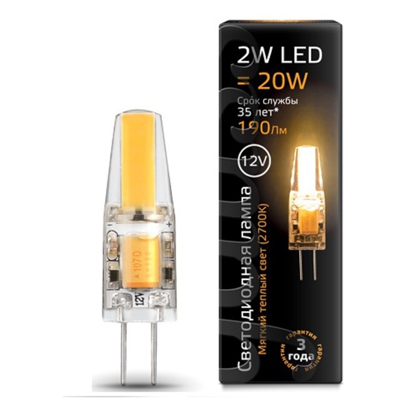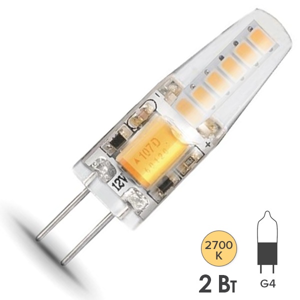Капсульная, низковольтная, светодиодная лампочка Гаусс, мощностью 2 Ватта с цоколем G4, теплый свет, силиконовый корпус 207707102