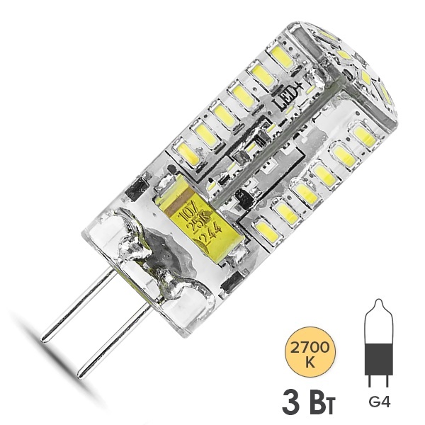 Капсульная, низковольтная, светодиодная лампочка Гаусс, мощностью 3 Ватта с цоколем G4, теплый свет, силиконовый корпус 207707103