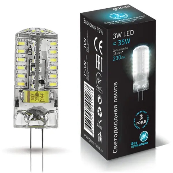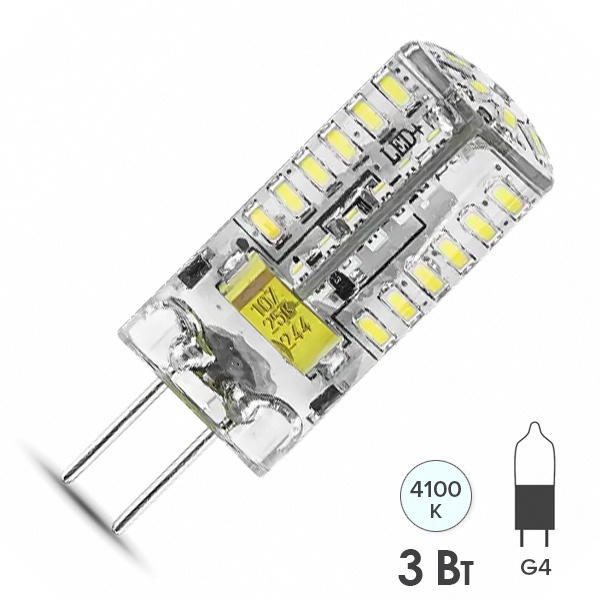 Капсульная, низковольтная, светодиодная лампочка Гаусс, мощностью 3 Ватта с цоколем G4, нейтральный белый свет, силиконовый корпус 207707203
