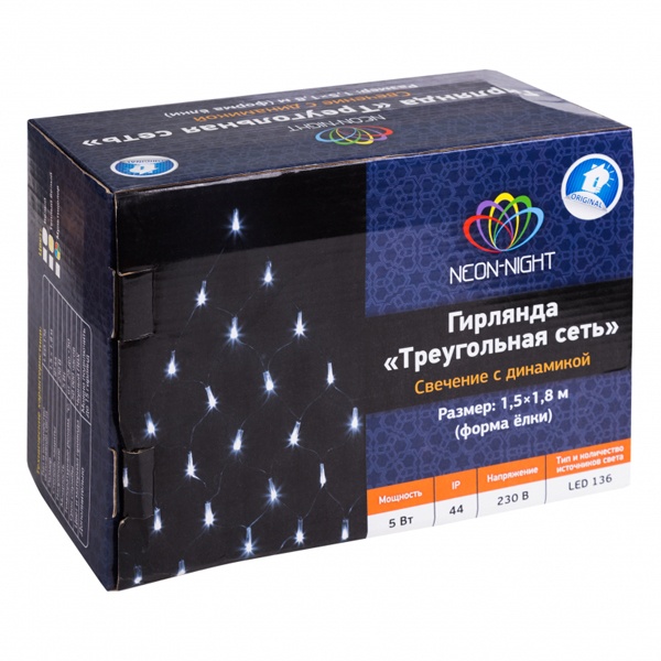 Гирлянда "Сеть" представляет из себя прозрачное полотно в виде треугольника, разбитого на равные ромбы, в углах которых находятся светодиоды.