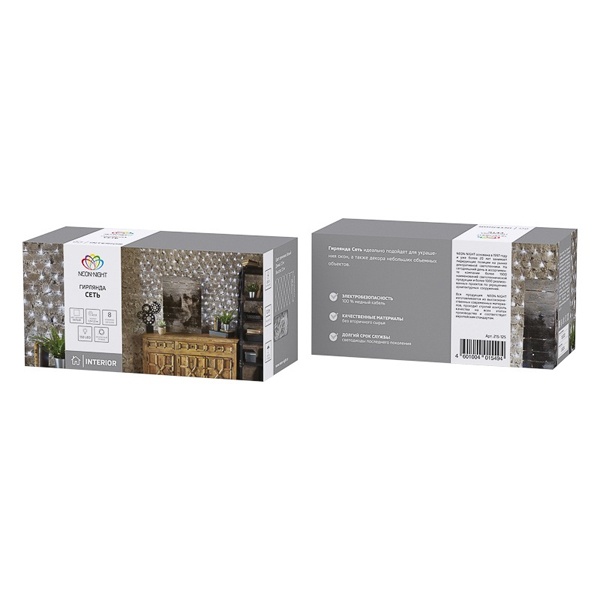 Гирлянда «Сеть» 1,5x1,5 м прекрасно подходит для декора оконных проемов. 96 светодиодов, излучающих ровный белый свет, расположены на одинаковом расстоянии. Воздушная сетка, в основе которой находится провод с прозрачной оболочкой из ПВХ, можно крепить при помощи крючков на присоске. Диапазон рабочих температур и защита IP20 предполагают использование в сухих отапливаемых помещениях. Контроллер с 8 режимами управляет красивыми динамическими эффектами.