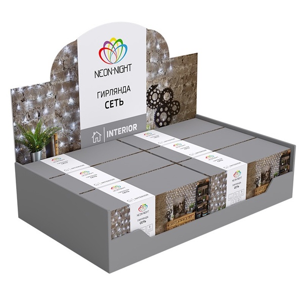Гирлянда-сеть при использовании на окнах или других поверхностях позволяет осуществить равномерную засветку по всей площади, для этого достаточно ее растянуть по периметру, используя, например, присоски с крючком.