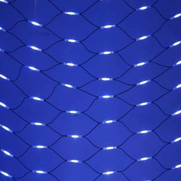Гирлянда-сеть представляет из себя конструкцию в виде прямоугольника размером 2*1,5 метра, разбитого на равные ромбы, в углах которых находятся два диода белого и синего цвета, соединённых и расположенных по направлению друг к другу. Гирлянда имеет степень влагозащиты IP65 и каучуковый провод черного цвета, что позволит вам быстро и выгодно решить вопрос с декоративным украшением любых объектов как внутри помещения, так и снаружи. В комплект входит установочный набор для подключения гирлянды к сети. Особенностью этого типа гирлянд является то, что их можно соединять между собой и/или к ней можно также подключить контроллеры арт. 217-201 которые позволят гирлянде работать в динамике. Данная гирлянда используется для украшения фасадов и потолков зданий практически любой площади, отлично подходит для украшения небольших кустов, растяжки между направляющими в беседке или веранде, ей можно легко и быстро обмотать колонны или столбы, служит красивым декором окон зданий. Гирлянда-сеть имеет самое лучшее отношение цены к площади декорирования относительно других гирлянд, что делает ее уникальной в своем роде.