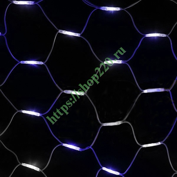 Гирлянда-сеть представляет из себя конструкцию в виде прямоугольника, разбитого на равные ромбы, в углах которых находятся два диода белого и синего цвета, соединённых и расположенных по направлению друг к другу. Гирлянда имеет степень влагозащиты IP65 и каучуковый провод белого цвета, что позволит вам быстро и выгодно решить вопрос с декоративным украшением любых объектов как внутри помещения, так и снаружи. В комплект входит установочный набор для подключения гирлянды к сети. Особенностью этого типа гирлянд является то, что их можно соединять между собой и/или к ней можно также подключить контроллеры арт. 217-201 которые позволят гирлянде работать в динамике. Данная гирлянда используется для украшения фасадов и потолков зданий практически любой площади, отлично подходит для украшения небольших кустов, растяжки между направляющими в беседке или веранде, ей можно легко и быстро обмотать колонны или столбы, служит красивым декором окон зданий. Гирлянда-сеть имеет самое лучшее отношение цены к площади декорирования относительно других гирлянд, что делает ее уникальной в своем роде.