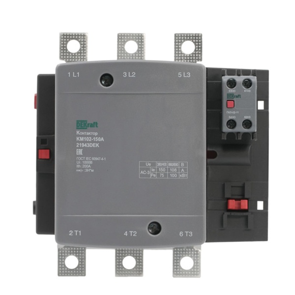 Трехполюсный магнитный пускатель, ток нагрузки 150 Ампер, 1NO+1NC контакты, категории AC-3, AC-4 21943DEK