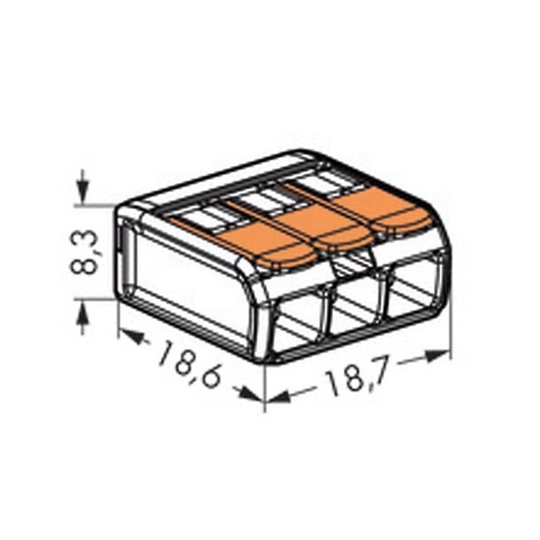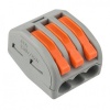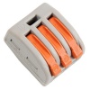 Клеммник WAGO 3 (одножильных или многожильных) х 0,08-4 мм 32A Cu [уп. 50шт] — компактный универсальный соединитель для быстрого и надежного соединения медных проводников в распределительных коробках, светильниках, щитах и клеммных отсеках оборудования. Серия 221 с рычажным зажимом позволяет подключать как одножильные, так и многожильные проводники без применения инструмента: достаточно поднять рычаг, вставить зачищенный провод и опустить рычаг до фиксации.