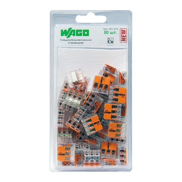 Модель WAGO 221-413 рассчитана на 3 проводника и выдерживает ток до 32 А, обеспечивая стабильный контакт и удобство обслуживания. Прозрачный корпус дает возможность визуально контролировать глубину ввода проводника и качество соединения. Поставка в упаковке 50 шт удобна для монтажников и объектов с большим объемом соединений.