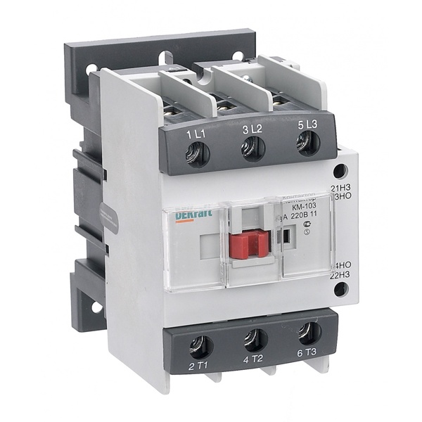 Контактор серии КМ-103 DEKraft; 3P; номинальный ток – 95 А (AC3); напряжение управления 110 В пер.тока; доп.контакты – 1НО+1НЗ; установка – на стандартную DIN-рейку. Контакторы КМ-103 предназначены для пуска и останова асинхронных двигателей, для коммутации различных нагрузок в сетях напряжением до 690 В пер.тока. Дополнительные защитные крышки исключают попадание пыли внутрь контактора и обеспечивают защиту от случайного прикосновения.