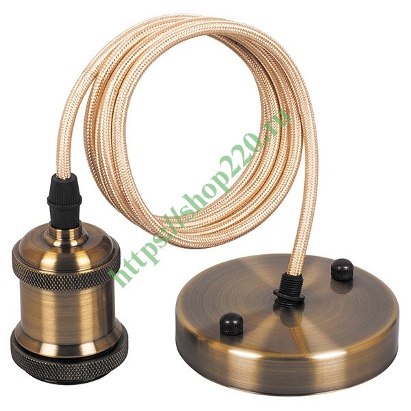 Патрон со шнуром 1 м, Ферон LH128, черное золото 22363