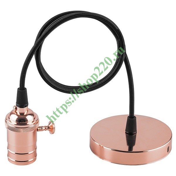 Патрон с выключателем и шнуром 1 м , Ферон LH129, цвет медь 22367