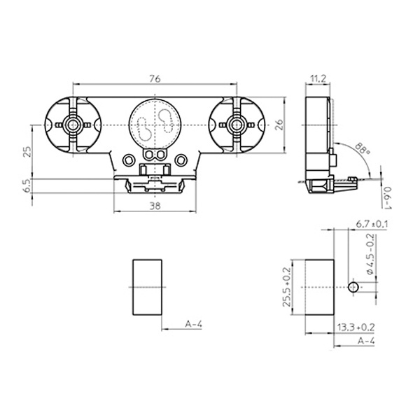 Двойной патрон G13 со стартодержателем без стопора для линейных люминесцентных ламп Т8. 100486