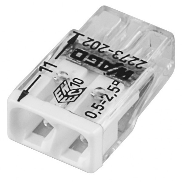 Клеммник WAGO 2 (одножильных) х 0,5-2,5 мм 24A Cu/Al с пастой Alu-Plus [уп. 100шт] — компактный пружинный клеммник для быстрого и надежного соединения двух одножильных проводников в распределительных коробках, щитах и других монтажных узлах. Модель рассчитана на работу как с медными, так и с алюминиевыми жилами: внутри используется контактная система WAGO и специальная паста Alu-Plus, которая улучшает качество соединения алюминия и снижает риск окисления в зоне контакта. Это решение удобно для монтажников и сервисных специалистов, когда нужно быстро выполнить аккуратное соединение без винтов и без обслуживания в дальнейшем.