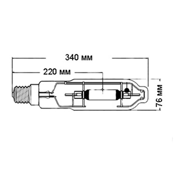 Металлогалогенная лампа БЛВ HIT dw 1000W 230V 9.5A 6000K 80000lm горизонтальной установки с допустимым углом наклона 60°, с цоколем E40. 227311