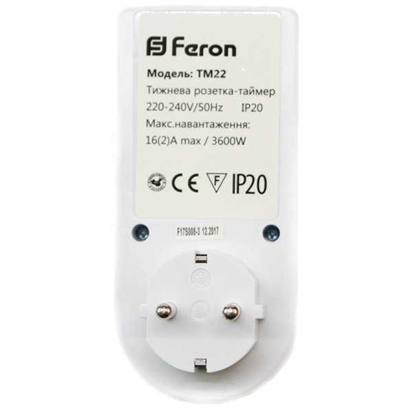 Розетка с таймером (недельная) 3500W/16A 230V, TM22