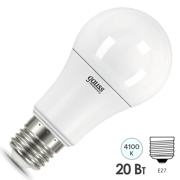 23229 Лампа светодиодная Gauss LED Elementary A60 20W 4100K E27 холодный свет фото 1