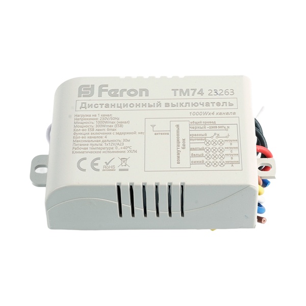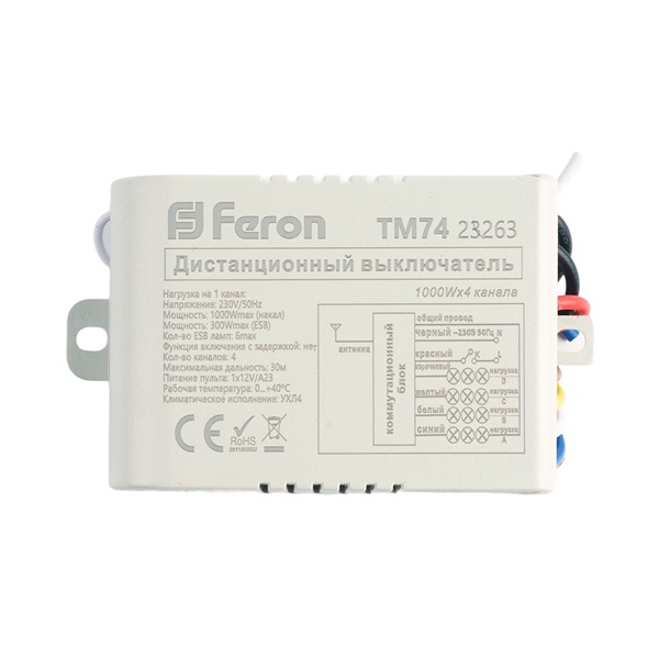 Дистанционный выключатель с блоком управления на 4 канала, Ферон ТМ74 23263