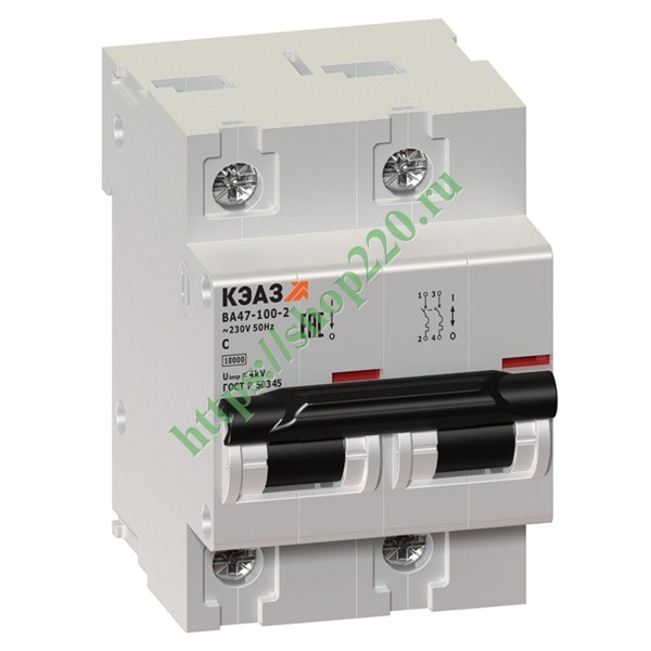 Автоматический выключатель ВА47-100 2P 63A C 10кА AC 3м (ВА47-100-2С63-УХЛ3) КЭАЗ (автомат электрический)