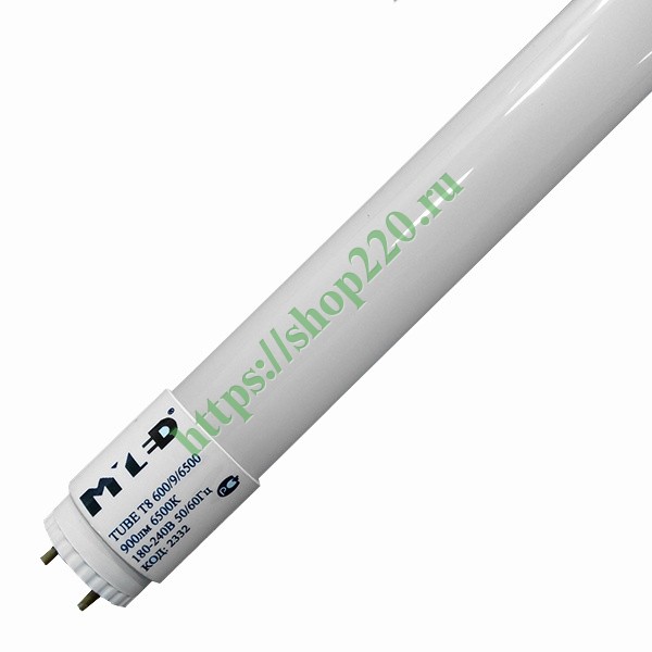 Лампа светодиодная LED-TUBE T8 9W 6500K 900Lm 600mm поворотный G13 матовая холодный свет — линейная LED-лампа формата T8 для замены традиционных люминесцентных трубок в светильниках с цоколем G13. Обеспечивает яркий холодный белый свет 6500K, быстро выходит на полную яркость и подходит для помещений, где важны хорошая видимость и рабочее освещение.