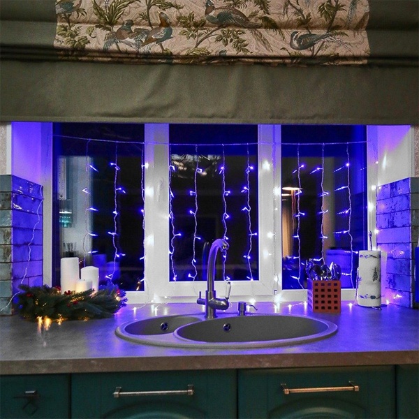 Данная гирлянда имеет 96 диодов с синим цветом свечения.