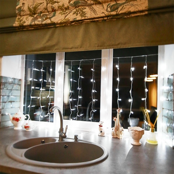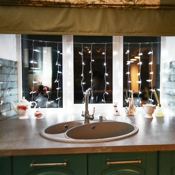 Гирлянда "Светодиодный Дождь" представляет собой гибкий горизонтальный шнур-шину (1,5м), к которому через определенные промежутки крепятся вертикальные нити (12 шт.) равной длины со светодиодами. Данная гирлянда предназначена для домашнего использования и идеально подойдет для украшения стандартного окна в квартире или офисе, а так же удачно подсветит пространство за плотными еле прозрачными шторами или тюлем.