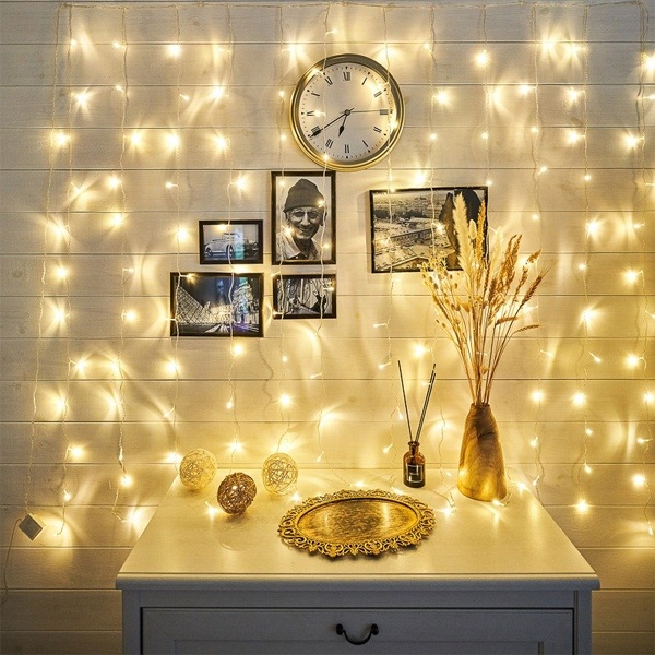 Данная гирлянда имеет 144 диода с теплым белым цветом свечения.