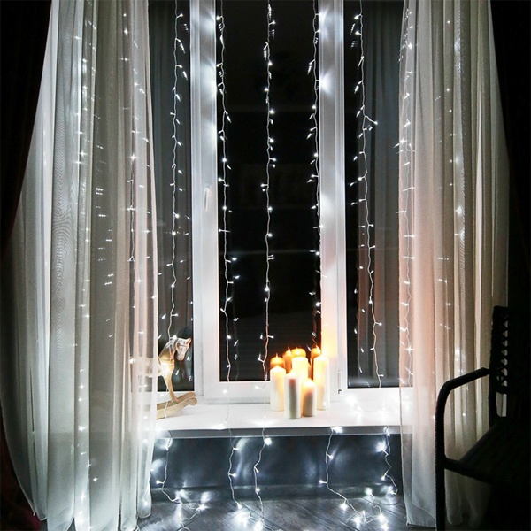 • Гирлянда светодиодная дождь 2х3м белое свечение с динамикой прозрачный провод 230V