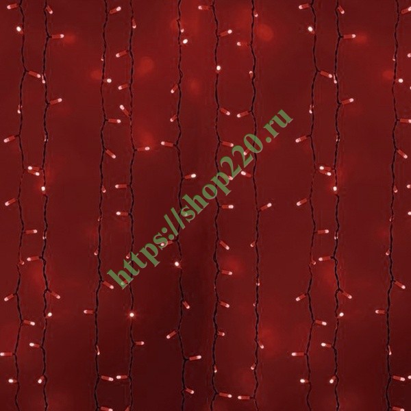 Гирлянда Светодиодный Дождь 2x1,5м 360LED красный IP44 постоянное свечение, черный провод, 230В 235-122