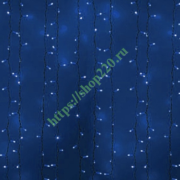 Данная гирлянда имеет синий цвет свечения светодиодов.