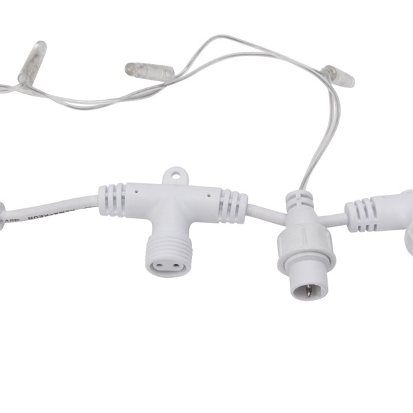 Гирлянда "Светодиодный Дождь" представляет собой гибкий горизонтальный шнур-шину (2м), к которому через определенные промежутки крепятся вертикальные нити (20 шт.) со светодиодными лампами, которые отличаются от «Бахромы» тем, что имеют одинаковую, достаточно значительную длину, часто превышающую протяженность шины. На концах каждой шины есть разъем и штепсель, которые предназначены для последовательного соединения нескольких световых дождей в большой занавес ПЛЕЙ-ЛАЙТ необходим шнур 303-500-1. Используя занавес, можно не только создавать красивые световые занавесы или оформлять различные плоскости, например, фасады домов, окна и т.д., но и украшать объемные объекты.