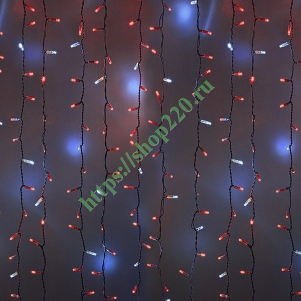 Гирлянда "Светодиодный Дождь" представляет собой гибкий горизонтальный шнур-шину (2м), к которому через определенные промежутки крепятся вертикальные нити (20 шт.) со светодиодными лампами, которые отличаются от «Бахромы» тем, что имеют одинаковую, достаточно значительную длину, часто превышающую протяженность шины. На концах каждой шины есть разъем и штепсель, которые предназначены для последовательного соединения нескольких световых дождей в большой занавес ПЛЕЙ-ЛАЙТ. Используя занавес, можно не только создавать красивые световые занавесы или оформлять различные плоскости, например, фасады домов, окна и т.д., но и украшать объемные объекты.
