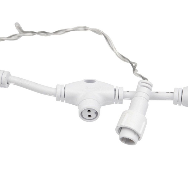 Гирлянда "Светодиодный Дождь" представляет собой гибкий горизонтальный шнур-шину (2м), к которому через определенные промежутки крепятся вертикальные нити (20 шт.) со светодиодными лампами, которые отличаются от «Бахромы» тем, что имеют одинаковую, достаточно значительную длину, часто превышающую протяженность шины. На концах каждой шины есть разъем и штепсель, которые предназначены для последовательного соединения нескольких световых дождей в большой занавес ПЛЕЙ-ЛАЙТ. Используя занавес, можно не только создавать красивые световые занавесы или оформлять различные плоскости, например, фасады домов, окна и т.д., но и украшать объемные объекты.
