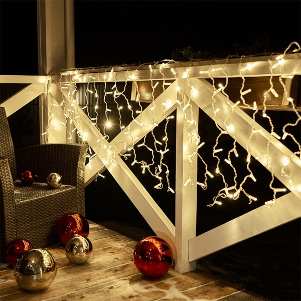 Гирлянда светодиодная «Дождь» («Занавес») представляет собой гибкий горизонтальный шнур-шину (2 м), к которому через определенные промежутки крепятся вертикальные нити (20 шт.) равной длины (0,8 м) со светодиодами.Данная гирлянда предназначена для использования как внутри помещений, так и снаружи. Идеально подойдет для украшения кафе, торговых центров, офисов и т. д. Благодаря коннекторам на концах гирлянды, можно соединять несколько гирлянд в один большой занавес, закрывая обширные площади.Данная гирлянда имеет 160 светодиодов с теплым белым цветом свечения.